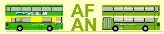 LONDON COUNTRY AF and AN classes.This page created 12th March 2001AF: Daimler FleetlinesThe AFs were London Country's first double-deckers - other than those inherited from London Transport. They had had fairly good experiences with older Fleetlines: the XF class had been based at East Grinstead for most of their trials, and still were. They had been reckoned to be better than their Atlantean contemporaries, the XAs.One man operation of doubledeckers was now legal, and London Country saw that it would be vital for their economics. Some of their trunk flows required doubledeckers for the peaks or for short sections of route, although at other times and places they would be running fairly empty. When they were offered eleven Fleetlines in 1972, that had been ordered by Western Welsh but had turned out to be over-enthusiasm in the face of the Bus Grant, London Country seized them with some enthusiasm, and put them into Godstone for the 410. If they could cope with the Welsh valleys they should cope with Westerham Hill.