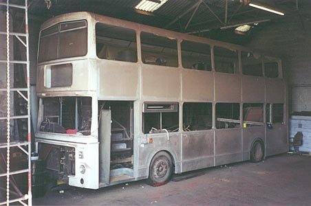 V3 (103) in the Morley workshops, April 2001, with framing and panelling replaced.