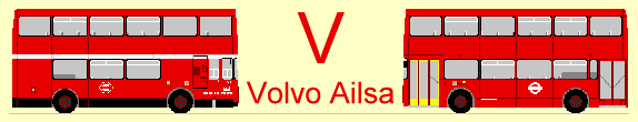 ![]() The LONDON TRANSPORT Volvo Ailsas: V classThis page created 16th June 2001 by Ian Smith![]() V1-V3: The experimental AilsasIn 1984 London Transport was thinking hard about its next generation of buses. Titans and Metrobuses were arriving, but the production run of both was forseeably limited, and LT wanted to be ahead of the game for the next generation. Rather than repeat the mistakes of the 70's, when mass orders of new buses without proper evaluation had led to widespread problems, LT set up a pilot study, buying small numbers of vehicles from several manufacturers and putting them into comparison trials: the Alternative Vehicle Evaluation (AVE) trials.Three Volvo Ailsa B55s were included. The Ailsa was a long way from a new type, having been around since 1972, but it offered the chance to evaluate a front-engined bus, as the Ailsa featured a compact turbocharged diesel engine alongside the driver. V1-2![]() They went with the other AVE buses to Stockwell (SW), where they spent their weekdays on the 170 and Sundays on the 44, taking up duties in April 1984. They quickly proved popular with drivers, maintenance staff and passengers.