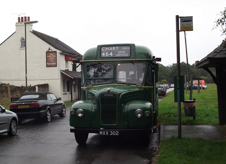 Oxted Running DaySunday 4th September 2011Prepared by Ian Smith, 16th September 2011.464: Oxted Station to Chart: GS2On arrival back at Oxted I was just in time to join John Huxford on GS2, for the start of his post-lunch stint. We went round the block to load up in Station Approach, and headed for Chart. John took the direct approach: under Station Bridge, then right down Station Road East and up the hill to Limpsfield Common. We motored along the wooded ridge eastwards, and turned in by Chart Church to terminate this short journey at The Carpenters Arms.465: Chart to Staffhurst Wood: GS2John was going to put up the 464 Oxted Station blinds for the return trip, but we persuaded him that it was a through trip to Staffhurst Wood, so he put up the much rarer 465 to Staffhurst Wood blind.We set off on the short journey back tp Oxted Station, where we would form one of three vehicles on the 1425 departure to Staffhurst Wood. These journeys served the secondary school at Merle Common, where there was no convenient stopping point. So buses went forward to Staffhurst Wood to turn. But I'm getting ahead of the story. We set off from Oxted Station, round into Church Lane and out to cross the A25 and grind up through the narrow street of Old Oxted. We made the turn into narrow Beadles Lane and headed for Hurst Green. We crossed the green and passed the Coldshott terminus at Holland, and continued along Merle Common Road, into the woods to meet Red Lane, the direct route from Limpsfield. A little further on we came to the triangular junction with Staffhurst Wood Road, the old terminus. GS15 and RF633 pulled up behind.