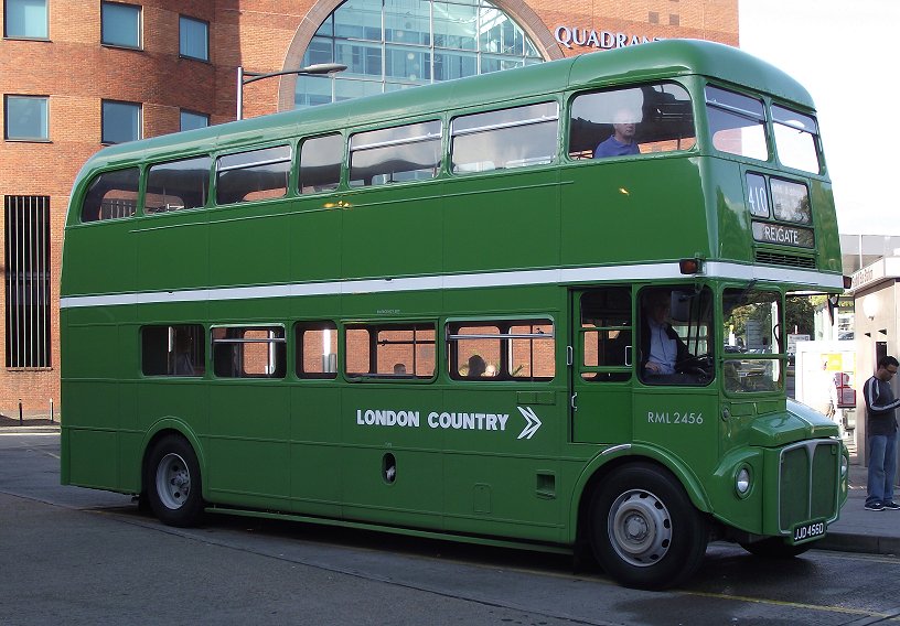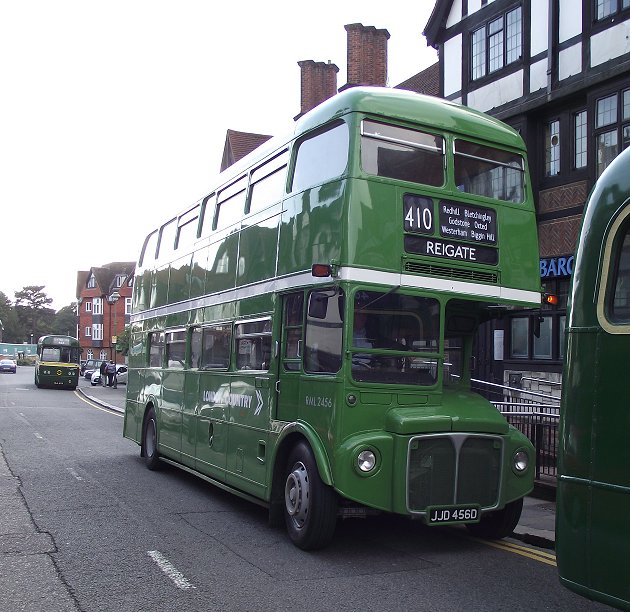 Oxted Running DaySunday 4th September 2011Prepared by Ian Smith, 16th September 2011.410: Oxted to Redhill: RML2456I had a choice of ways to Bromley: RT604 on the 410/411 to Croydon, plus bus or train; SNB340 back to Westerham, plus 246, or to Edenbridge Station, plus train via Tonbridge; or by RML2456 to Redhill plus train via Tonbridge or London Bridge. I had bought my return train ticket to Redhill (any route), so the last option appealed most.RML2456 turned up on time, and once again I claimed the seat behind the big bonnet. I noticed that the bus had had its tungsten light bulbs reinstated. We pulled away past RF633. After the crowds of the day the street seemed particularly deserted. Even the two Rail Replacement buses had gone. We made our way round the block into Church Lane, and passed the end of Station Approach, with its mock-Tudor styling. We headed south-west, down to cross the A25 and climb the narrow street of Old Oxted. The bus climbed on up to the Tandridge Roundabout, and continued westwards, gently downwards to Godstone Green, round the triangle there and on westwards, back up on the ridge, through Bletchingley, then down round the bends to pass under the railway at Redhill Station. The bus was going on to Reigate, but my trip on it terminated at the bus station. RML2456 turned out of the shadows of Redhill Bus Station back into sunlight to resume its journey. I crossed the road to Redhill Railway Station, and found that a Tonbridge train was due in two minutes. My homeward direction was determined...