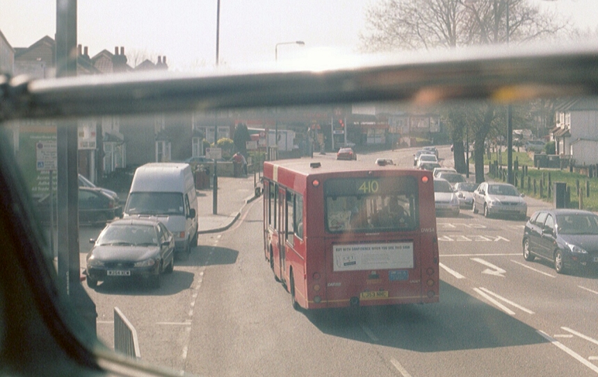 We set off again, on the westward leg. And promptly pulled up hard just after the first bus-stop. It seems that the event timetable had us stopping there rather than the bus station. A rush of enthusiasts joined us, and we set off again, over the tram tracks and on past Waddon. We headed west along the Country bus route through Beddington.