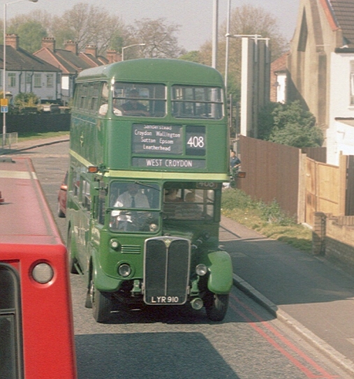 Then, past Beddington Park, came RT604, heading for Chelsham with a 403, wearing the NBC green and white that it gained for working this route in London Country days. It was followed by another of Arriva's Cadets, two foot longer DWL9, on the 407, today's remnant of the 470 between Sutton and Caterham.