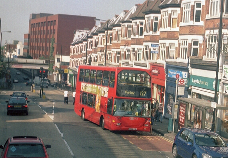 We turned east from Wallington along the road past Beddington Park to Waddon, and into West Croydon. We met RT604 returning from an afternoon trip to West Croydon as we passed the new tram station at Centrale.