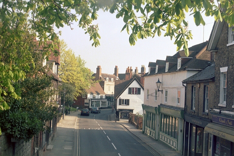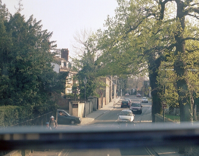 The we climbed the long back-slope of the Downs, toward Tatsfield, and rolled down the gradient into Westerham. Soon we were stopping at Sevenoaks Station to set down, before climbing up St,Botolph's Drive to the War Memorial and on through the town.