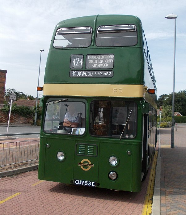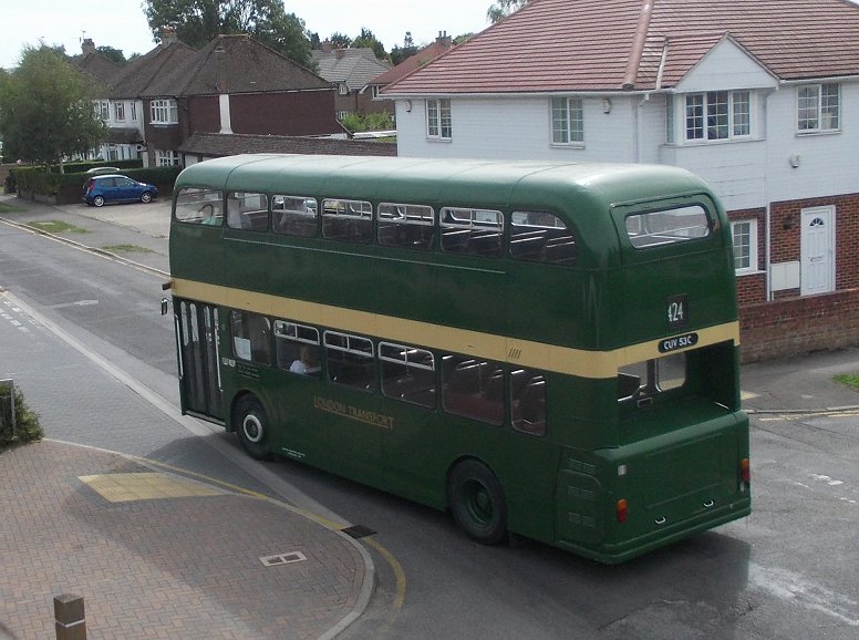 424: Horley to Hookwood: XF3At the end of the lunch-break RF633, ready for the trip to Outwood, pulled forward to release the XF from the stand. I joined the Fleetline, now with blinds set for the short run north to Hookwood (Black Horse)It was not far to Hookwood. We rumbled off north-westwards, crossing the A23 at The Air Balloon into Vicarage Lane. At its end we turned left into Lee Street for the final fling of Horley suburbia. Beyond the River Mole we trundled along Mill Lane to Hookwood. As we could not turn at the Black Horse junction on Reigate Road we had to turn south, and run down to a roundabout and back, turning in to stop at the little wooden bus shelter outside the Black Horse. 424: Hookwood (Black Horse) to Copthorne (Dukes Head): XF3As the blinds were being changed at Hookwood the assembled photographers were treated to a selection of possible destination blinds: E.Grinstead (Stone Quarry Estate); East Grinstead Gar, and then Copthorne (Dukes Head).We reboarded the bus, and headed back into Horley. We paused at the station, but no connections on this journey south. We made the by-now familiar turns to get onto the Smallfield road, and motored eastwards, the big Gardner engine at the back so different from the RT noises of the T. In Smallfield we turned right along Redehall Road, and worked our way along through the linear village. We left Smallfield's ribbon development behind at the crossing of the B2037, and headed in towards Copthorne. We had only just got into the village when we made the sharp turn hard left into Borers Arms Road. We rumbled on through the eastern limb of the village to meet Copthorne Common Road for the final fast run along the A264 to the Dukes Head roundabout. We expected to turn round the roundabout, and were bemused when the bus continued into Snow Hill. Where were we going. All was very quickly revealed (in more ways than one), when we turned in at the yard of Southdown PSV. Our driver so far was going off-shift here. We drove into the yard and turned round. Much (if not all) of the current fleet was in the compound. Nearest at hand were Darts T591CGT, GX57BXH, SN53LWL, X188BNH, YX59BZD, Y839TGH, T841TGH, LK55ADX, T840TGH and EnviroDart YX59BZC. An ex-Dublin Olympian and a Nottingham Dart stood in an inner compound. More of the fleet were at the far end of the yard, including Darts W343VGX, LX55AEA, LX55ADZ, Y834TGH.