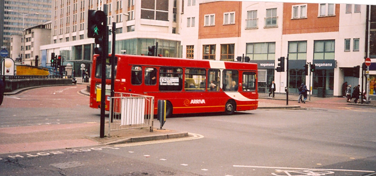 6/00 WN tested on 184 route: Arriva red, white cow-horns (Wood Green)