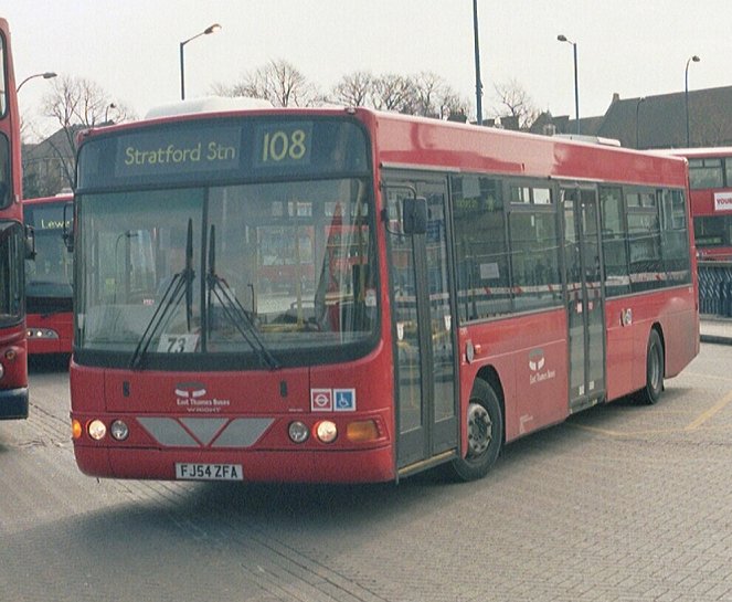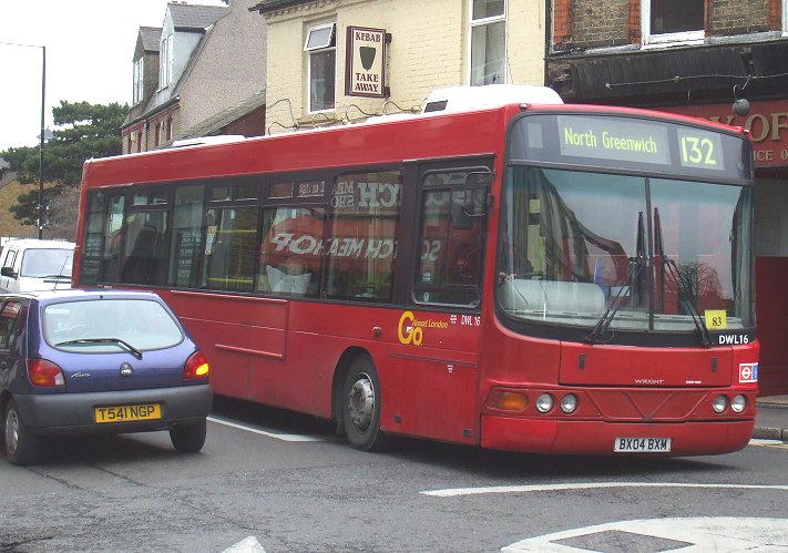 DWL20 in East Thames Buses livery at the Cobham Bus Museum Open Day at Chobham, April 2007.From March 2007 the 132, by now North Greenwich-Bexleyheath, became an official DWL allocation, although the total of 25 did not meet the requirement of 26 vehicles on the 108 and 132 combined. Shorter DW10-12 were transferred to Belvedere to make up the difference.I travelled on DWL26 from Lewisham to Stratford in April 2006.Go-Ahead London takes overIn October 2009 East Thames Buses, with its routes, garages, buses and crews, was taken over by Go-Ahead London. ETB's fleetnames on the plain red bodywork were replaced overnight with Go-Ahead fleetnames as well as legal lettering.By chance I saw a pair of DWs (DW4 and DW8) within days of the takeover in October 2009, wearing Go-Ahead London fleetnames and working on the 108 to Stratford.DW1-11 were almost immediately relocated from Mandela Way (MA) or Belvedere (BV) to Merton, which was much better placed for the 201. DW12 moved to Bexleyheath, where it stayed for a while before moving to Merton. Repaints into Go-Ahead London's livery, with a brighter red, charcoal skirt and yellow cheat-line, which transformed the appearance of the buses, occurred during early 2010. Merton gave them a decent blind set for its single decker routes, and they appeared on quite a few different routes when not in use on the 201. In December 2010 DW12 was in the new Go-Ahead livery, and still at Bexleyheath on the 132. Here it is seen in the rain at Eltham.DWL13-37 moved to Go-Ahead's garage at Bexleyheath, Belvedere becoming just a store. The DWLs too were repainted, once the shorter buses had been done. They became the staple stock for the 132. In February 2010 DWL16 was still in the plain red livery, at Bexleyheath on the 132. Here it is negotiates the tight streets of Bexley.Those not required at Bexleyheath were transferred to New Cross for use alongside EDs and LDPs on the 108. Some of the Bexleyheath DWLs were loaned to New Cross during the summer of 2012 to help out on the enhanced 108 service during the Games, the 132 being enhanced by double-decking. Some were transferred to Merton to join the DWs.I travelled on DWL22 several times in November 2013. Here it calls at Bromley-by-Bow Station to pick me up. In December 2014 I overtook it in the car as we entered the Blackwall Tunnel, and my wife took the picture.DisposalShort Cadets DW1-8 were withdrawn in December 2014, and went to Ensign Bus sales, from where most went either to Western Greyhound or Cotswold Green for further use. DW10 was no longer around, having caught fire back in May 2010. DW9 and 10,11 were transferred across the Thames to the ex-Blue Triangle operation at Rainham. DW9 was not used, but DW10 and DW11 had a short stint on the W19 before withdrawal early in 2015.The Bexleyheath DWLs were variously sold or transferred, mainly to Merton or New Cross. The Merton buses were mostly withdrawn during 2014. The New Cross buses found a home back on the 108, where they have continued to work until unreliability forces withdrawal. Several have gone to McGills in Greenock.