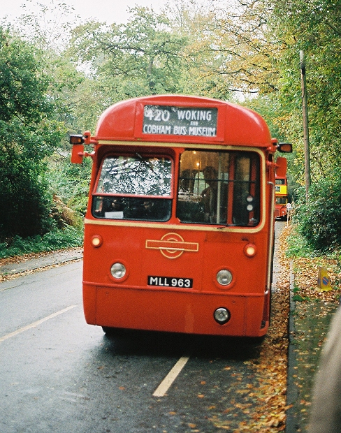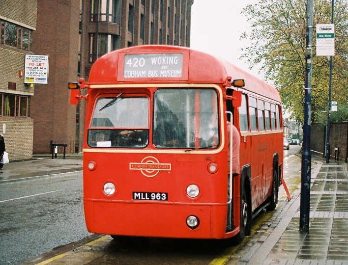 Then RML898 turned the corner, arriving back from Brooklands wearing route 11 blinds, followed by RF326, coming back from Woking on the 420.