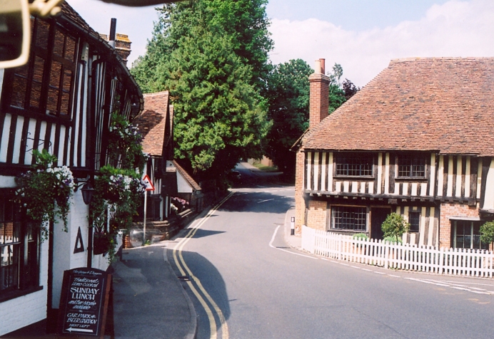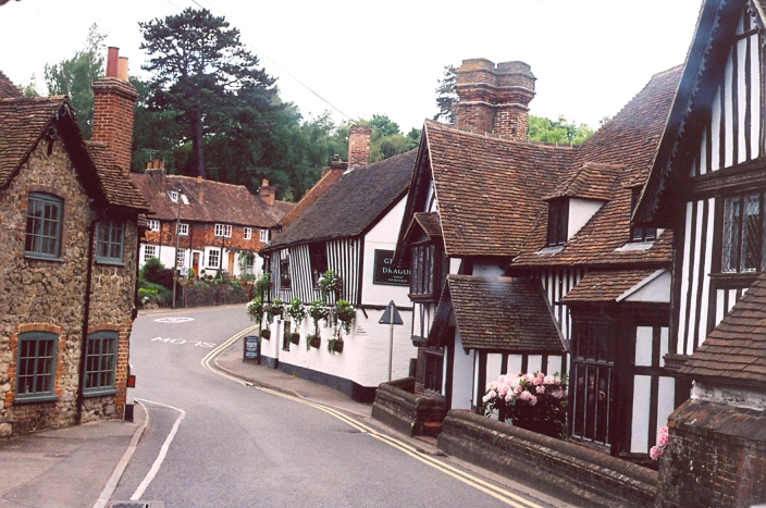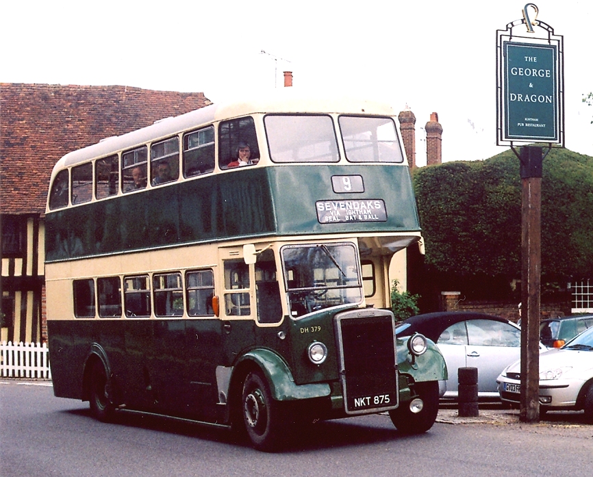We had a seven-minute turnround at Borough Green Station. Then we all climbed back aboard and set off back to Sevenoaks. At Ightham we nosed between the half-timbered buildings lining the street and pulled up at the George & Dragon, where the crew announced a short photo stop.