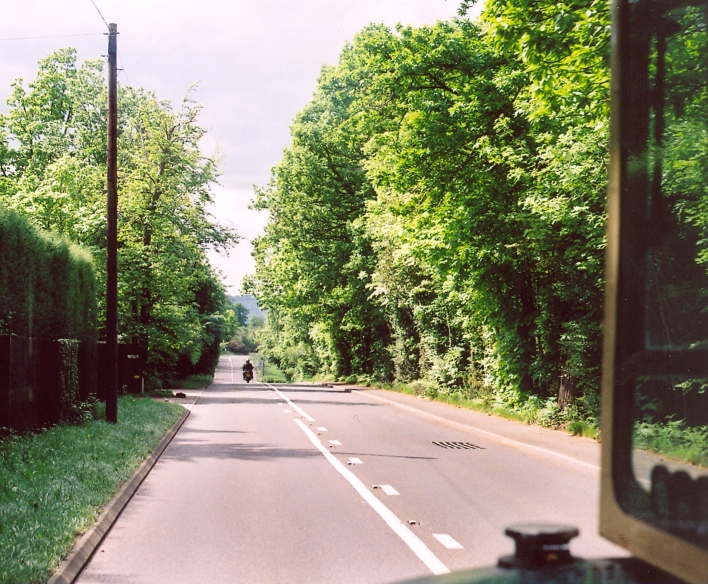 Continuing, we turned right, off the A227, to reach the A25 again, and headed west along the quiet A25. A lone motorbike roared along ahead of us. Apart from the double white lines it could have been the 1950s.