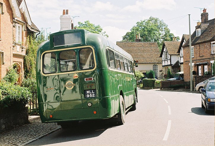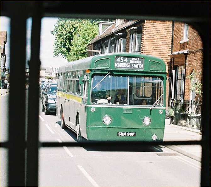 We exchanged a few passengers, actually taking more back than we brought. We set off across the River Medway and climbed up through the town, forking left onto the Hildenborough Road. At the big roundabout we turned down into Sevenoaks Weald, where we stood for a minute in the village centre. Then we turned right into Glebe Road and began the long climb up onto Hubbard's Hill, over the great arched bridge. Would we make it? Just! The gradient eased beyond the bridge and we heaved a sigh of relief as Norman could go back up the gearbox.