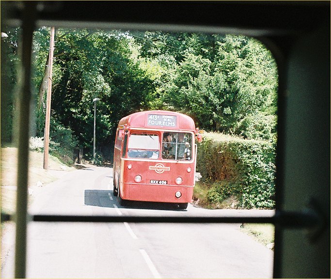 We met red RF429 this time, heading up Weald Road towards Four Elms on the 413A.