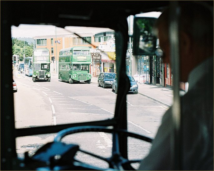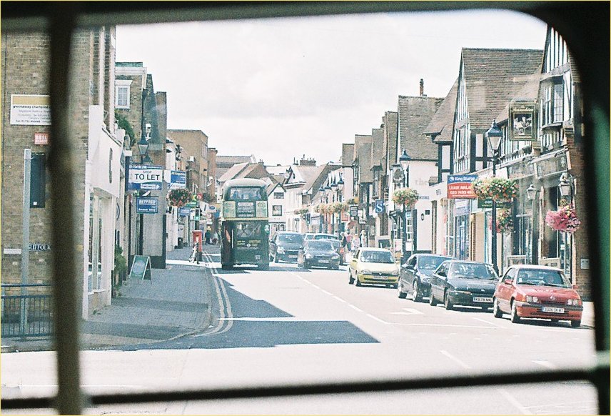 Then going in to Tonbridge it was just like the old days: a monumental traffic jam held us up before the traffic lights, across which one car at most, many times none, were escaping during each sequence. RT3183 came scurrying the other way on a 403 for Westerham. Then suddenly the jam cleared and the traffic moved freely again. We drove down therough Tonbridge, past the station, to turn just beyond at a roundabout and return to the terminal stop.