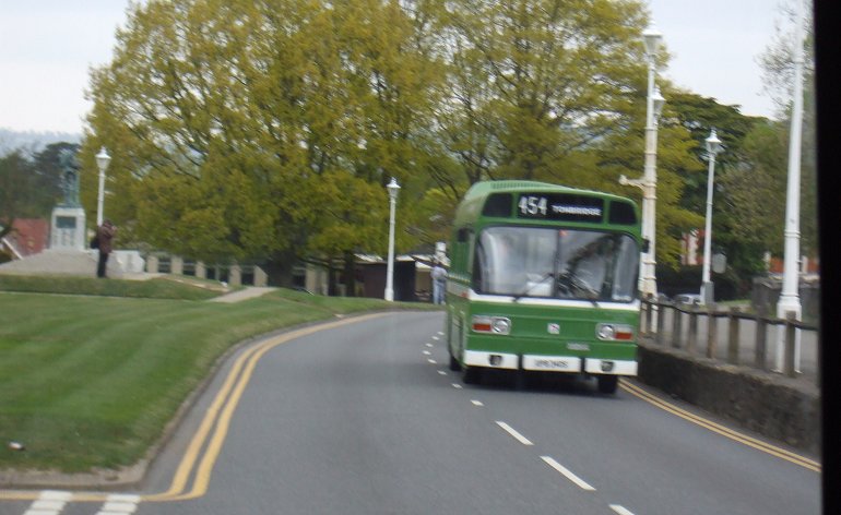 I snapped a rear shot of MB90 from the side window as we pulled out of the bus station. It was resting off the 454. We headed north, passing Leyland National SNB340 as we reached the War Memorial. That too was on the 454, heading for Tonbridge.