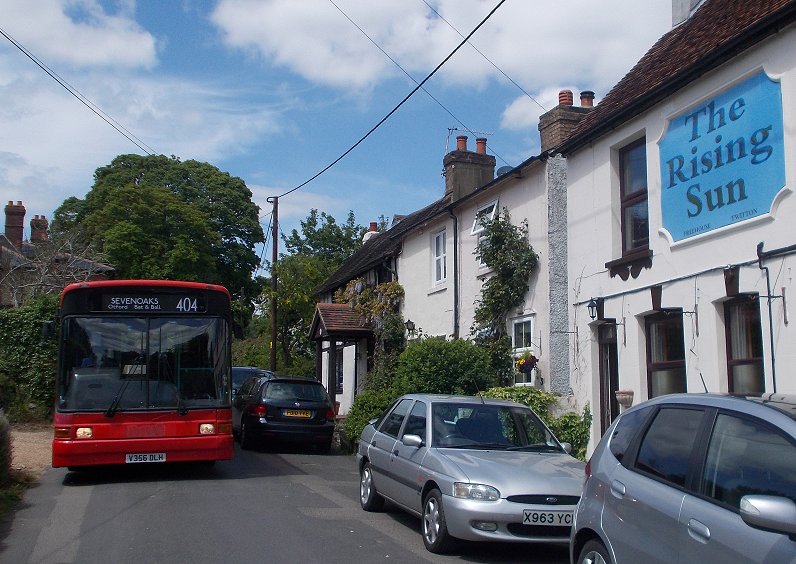 Sevenoaks Running DaySunday May 17th 2015Prepared by Ian Smith, 28th May 2015.404 with DML41356404: Sevenoaks to Whitton: DML41356RF633 was back from its short trip to the White Hart. But what was that behind it? A preserved Dart Marshall! DMS41356 is one of the more travelled of its kind with First London. It started on the Roundabout routes in Orpington, but then served at Uxbridge, Northumberland Park, Hackney Wick, Lea Interchange, Dagenham, Greenford, Harrow (London Sovereign), Bracknell and Slough, before being acquired by the Bromley Bus Preservation Group in May 2013. Now it was being used for one of the shuttle services to Go-Coach's Open Day at Otford Garage. It was set up as a 404 to Twitton.I boarded the little red bus. Little? It is only about four inches shorter than an RF, and nine inches wider! It went well. I chatted to the crew as we headed north, out past the War Memorial and down the long hill through St.John's to Bat & Ball. We went straight on, towards Otford, meeting RF28 coming the other way as we passed the industrial estate. At Otford Pond we saw RT1700 at the stop on the other side. We turned onto the road west out of Otford, and met RF146, also on 404 duty from Twitton Village. Why Twitton rather than Shoreham? Past experience has showed CBR that getting buses along the narrow lane to Shoreham Village past the parked cars, and then doing a reverse turn at Shoreham Village, is a little difficult, so their 404s only go as far as Twitton, where the lanes are narrow and clogged up by cars, but reversing can be done by a loop, up over the railway on the Polhill lane, and round to The Rising Sun at Twitton.