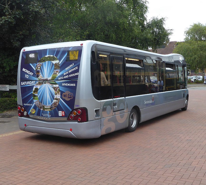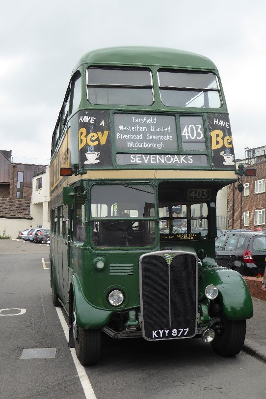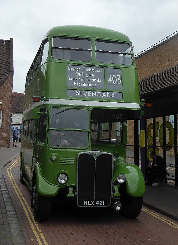 Sevenoaks Running DaySunday 16th July 2017Prepared by Ian Smith, 28th July 2017.Part FourSevenoaks Bus StationIt was lunch-time at Sevenoaks Bus Station, with something of a hiatus in departures, but some buses returning from morning shifts. Jersey 24 came in from a tour: Dunton Green next. Standing round the corner was RT3148, today one of three RTs working the 403 between Tonbridge and Westerham. The two buses show just how much progress was made in bus design during the 1930s, a decade of much engineering progress..RT604, wearing its NBC green and white livery, was another of the route 403 RTs, both today and in its final days with London Country. Now it arrived on a terminating trip from Westerham. Heading the other way, with one of the few normal Sunday services was Go-Coach Optare Solo 5001 in silver livery on the 401, Tonbridge to Westerham. I had another quarter-hour to wait for the bus I wanted, so saw a number of services leave: modernised Green Line RF48 was on a 404 to Twitton, and XF3, back from Dunton Green, was heading south to Tonbridge on the 402.