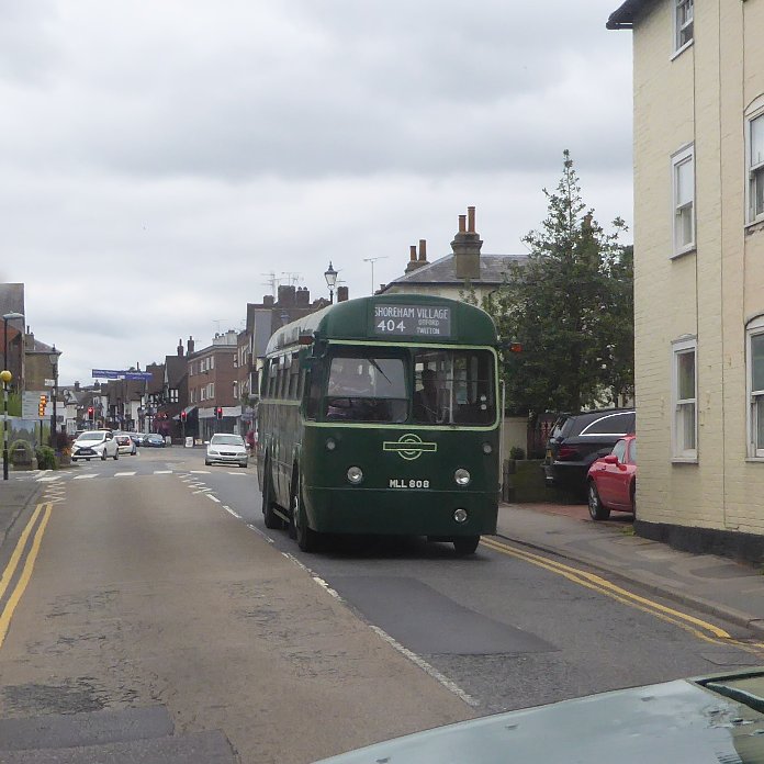 9: Sevenoaks Bus Station to Borough Green Station: DH478I found the bus I wanted: Maidstone & District Regent V DH478. I asked permission to join them, and ensconced myself behind the bonnet. Camden Coaches Reliance 900SAF came past, having arrived on the 68 from Plaxtol, its old route.We set off round the block, passing RF406 which was having a break off the 431A. We loaded up in the bus station for the trip to Borough Green. While we had gone round the block DAF 3916 had arrived off the 9 and parked, giving us a good view of its now historic 402 branding on its nearside. We rounded the block, turning right at the traffic lights to run north towards St.Johns and Bat & Ball. On the way we met Jersey 24, grinding up the hill towards the War Memorial with a tour from Otford. We turned right at Bat & Ball onto the A25, and followed the hilly road eastwards, along through Seal and then up and down through the Wealden forest. The small AEC engine (like that originally in RM2) made heavy weather of it. WE turned right off the A25 to duck down into the pretty little village centre of Ightham, then climbed up the other side to rejoin the main road. We forked left in Borough Green, turning left over the railway bridge and left again down the Station Approach. After a twirl we parked at the foot of the ramp. 9: Borough Green Station to Sevenoaks Bus Station: DH478There was a photo stop at the station, and the blinds were reset for the return to Sevenoaks.Then we were away, struggling up the steep ramp to the railway bridge, then accelerating away into Borough Green. Once again we turned off the A25 down into Ightham, where we stopped for photos opposite The George & Dragon. We climbed back up out of Ightham, forking right to reach the A25, then west through the green tunnel to Seal. We continued, dropping down to Bat&Ball, then climbed up the long hill through St.Johns up to Sevenoaks. We met RF271 bowling down the hill on a 404 to Twitton (wearing blinds for Shoreham Village, now bus-inaccesible due to parked cars). We ran along the High Street to reach the bus station.
