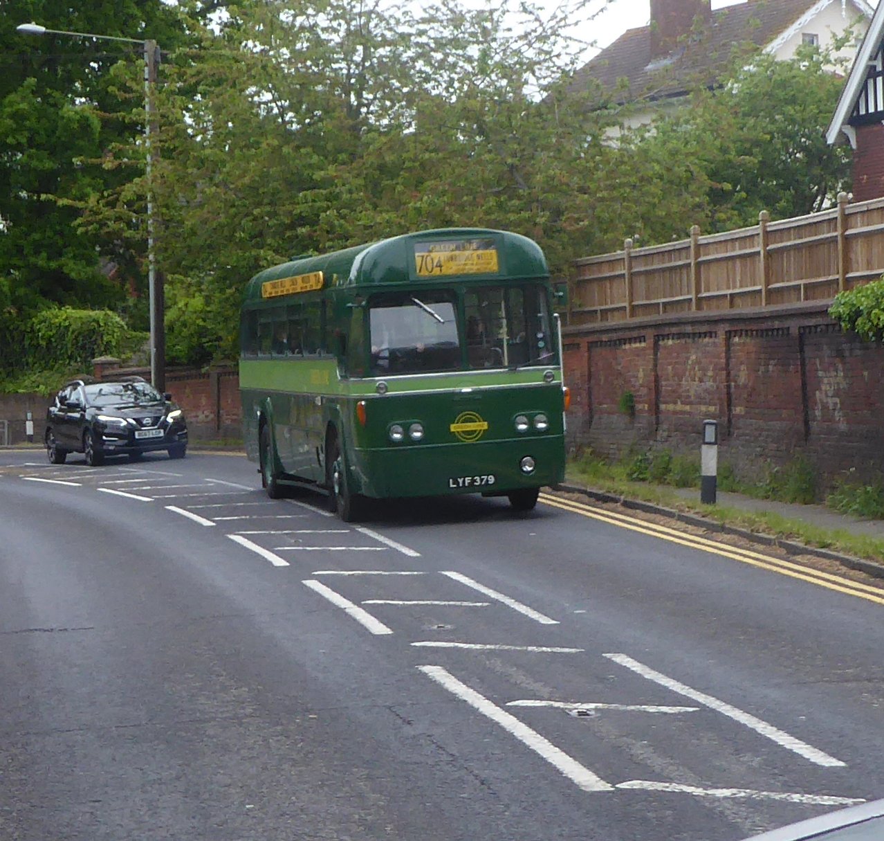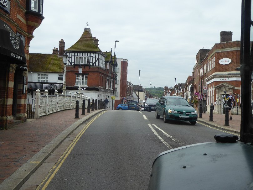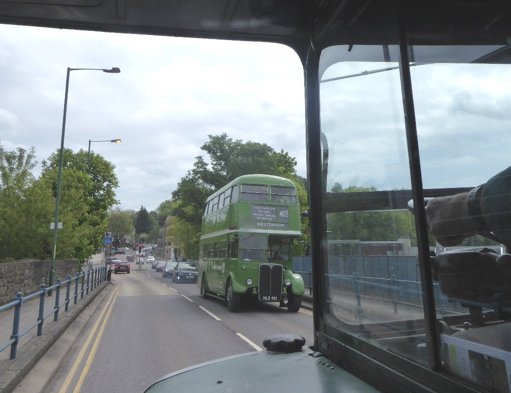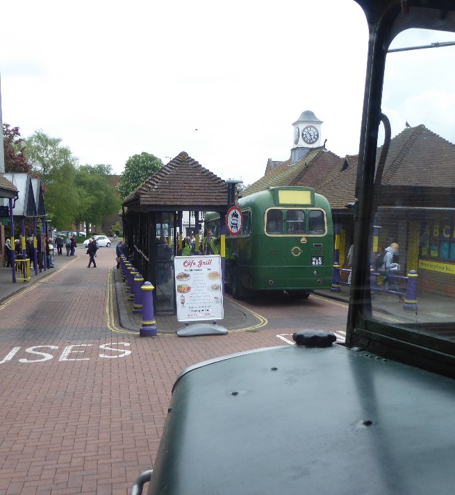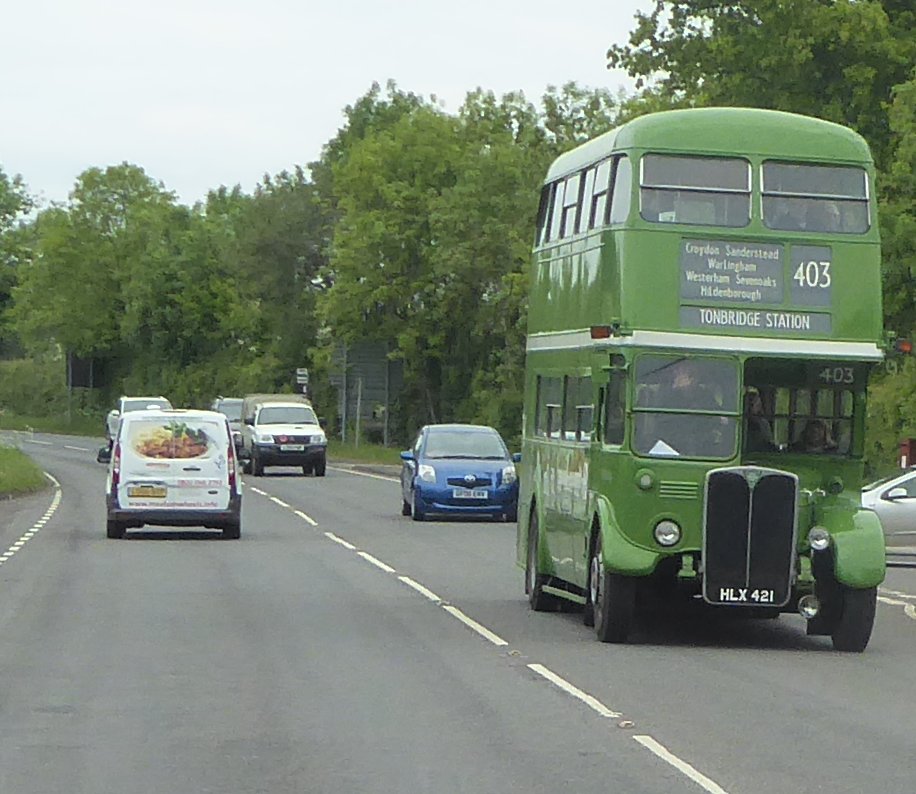 Sevenoaks Running DaySunday May 13th 2018Prepared by Ian Smith, 17th May 2018.Part 2: 403: Sevenoaks - Tonbridge - Westerham - SevenoaksRT3148: 403: Sevenoaks - TonbridgeWhilst I was in the cafe on of the few normal Sunday services made an appearance, in the shape of Optare Solo YJ09MMU on the 401 to Tonbridge Station. Go-Coach acquired this after Kent County Council took it back from Arriva Southern Counties in September 2017. It had been Northfleet's 1504.Other buses began to gather too, mainly RFs and RTs, but also Maidstone & District Reliance SC390. Red RT1798 was set up to work on the 402, at least as far north as Green Street Green. RT604, having worked in from Croydon on the 403, parked behind it, whilst its crew repaired to the cafe. I walked down to the collection of four RTs: RT604, RT1798, RT3183 and RT3148. The latter two were set up for the 403, in opposite directions, both departing at the same time. Almost arbitrarily I chose RT3148 - that front nearside seat downstairs is nicely conformed to my backside after many miles! We were to head for Tonbridge Station first, with John Huxford driving and Les conducting. The final destination blind was wound up. Then we were away, first of all round the block and into the bus station. Elderly Arriva Dart SLF 3523 was at the entrance, waiting time before heading for Tonbridge Station on the 402. At least there is a 402 service, if only a remnant of its former self. We had a sight of some of those RFs: RF600 pulled ahead to park behind modernised GreenLine RF28 which had taken the parking spot where the RTs had been. We loaded up and headed south: back round the block past RF633, and south along the High Street. Sevenoaks is an attractive town. We headed along the main road, which narrows past the entrance to Knole House and then twists down to pass between the grounds of Sevenoaks School. Then suddenly we were out into the countryside of the Sevenoaks Weald as we headed along Tonbridge Road past The White Hart. Then it was steep and twisting River Hill, as we descended from the heights of the Weald. We met the spur from the modern by-pass and headed down the long straight through Hildenborough. Go-Coach Solo YJ09MMU passed, returning north on a 401 for Westerham. Houses took over from countryside, and we reached the junction with the road from Wrotham, a junction that created huge traffic jams before the days of bypasses. We rolled down the hill into Tonbridge, and over the Medway. We climbed up over the railway bridge, past Tonbridge Station, and continued along to the roundabout, where we turned to run back to the station. In LT days no passengers would have been carried south beyond the station stop: this was M&D territory, and even running into Tonbridge was a concession, and meant that Rover tickets could not be used into the town. We met Arriva's Optare Versa 4227 on a northbound 402, and pulled into the station stop behind it.
