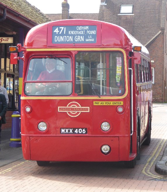 Sevenoaks Running DaySunday May 13th 2018Prepared by Ian Smith, 19th May 2018.Part 4: 471: Sevenoaks - Pratts Bottom - Knockholt - Sevenoaks: RF429Earlier in the day RF429 had set out on a 471 to Scotts Lodge, a destination used by one of the Knockholt schools services once a day. Alan had only eight passengers aboard for the first trip, and made it to Scotts Lodge. But turning there had been difficult due to a large barbecue and attendant car parking. So he had decided not to attempt it again for the remaining two booked runs. He had headed back for Sevenoaks, down Star Hill, following the route taken for garage runs to Dunton Green. The bus was parked, and I had grabbed a picture before setting out on the 413 trip.Arriving back at Sevenoaks, I just had time to snap RM1397 sitting at the same spot. As the Country Area did not borrow RMs at weekends like it had done with RTs, the RM retained its 61 blinds during the day. RF429 had come round to the stand for the second trip, and I joined Alan Charman aboard. We took on some thirty-odd passengers. With that load Alan was not going to go up Star Hill! With the rare Scotts Lodge blind still displayed we set off, coming up behind RF406 at the traffic lights as it was going round the block to load for the next 413 to Ide Hill. As we turned right Maidstone & District / Arriva Olympian 5928, in it hybrid livery, came along, arriving on a 401 from Farningham, substituting for an RML. I tried twice to take a picture, without success. We went down to the station and headed for Riverhead. RF679 came along on a 431A from Knockholt Pond via Halstead and Polhill. We continued along through Dunton Green and up to the roundabout at the foot of Star Hill. This hill used to tax the GSs, RFs and RTs that climbed it on 471s and 431s. It used to tax me as a teenager on a bicycle, although I preferred it to either Westerham Hill or Polhill: the former was too steep, and the latter too dangerous (traffic). So with thirty-odd on and a nearly 70-year-old bus Alan let discretion be the better part of valour and headed up Polhill instead. We passed the erstwhile Polhill Arms - now a business centre - and the Indian Restaurant, with its LNWR Semi-Royal railway carriage (of which more later). We headed down the old road from Badgers Mount to Pratts Bottom, and turned up the 471 route. We made a stop at The Bulls Head. Those of you with a discerning eye will have noticed that the Scotts Lodge blind has Cudham as a via point on it, not Pratts Bottom. The Scotts Lodge School journey was an out and back from Orpington, just the one in the morning. But who is quibbling - we're getting a free ride and enjoying the trip! We went on up the green tunnel of Rushmore Hill towards Knockholt Pound. At least this green tunnel is reasonably tall, formed with trees meeting overhead. Cudham Lane is just narrow, with tall hedges that steal the wing mirrors of RFs, and 4x4 drivers that don't know how wide their mini-tanks are. (Oooh, I am in a mood this evening!). We reached the junction with the road from Halstead, past Bowen's Yard, and threaded a way up past the parked cars to the little triangle opposite the Three Horseshoes at Knockholt Pound. Blinds were changed for the return garage journey. We turned left, on the garage run route from Knockholt Pound to the top of Star Hill. The hill Alan tackled carefully: an 8 tonne RF with 30-odd passengers is heavy on the steering. Alan recounted how one of the GS duties was particularly long, resulting in running out of fuel on the descent. Apparently by knocking it out of gear a GS could roll all the way back to the garage! This practice ceased after at least one went in the hedge on a corner: the duty schedules were altered so that the long duty was split to avoid fuel starvation. We descended the hill uneventfully, and rolled on down into Dunton Green. Just beyond the motorway bridge we met RF28 toiling uphill with a GreenLine 704. The blinds and roofboards said London, but today the service was just to Farnborough. We continued down to the Dukes Head opposite the site of Dunton Green garage - now a retirement home (for people, not buses). We went on down to Riverhead, where we passed RF679 on a 431C Fort Halstead works journey to Knockholt Station. Back at Sevenoaks Alan tucked RF429 out of the way before its next sortie. My eye had been caught by the Malta livery on Swift SMS274, withdrawn on Malta for preservation in 2011 and repatriated in 2015. Now it works for Go-Coachhire at Otford. Lovely to see it.