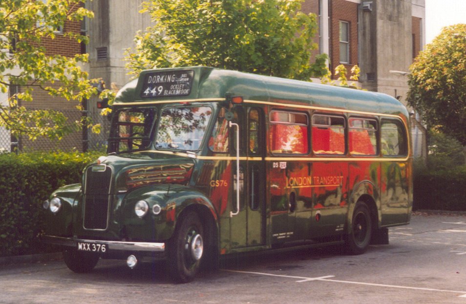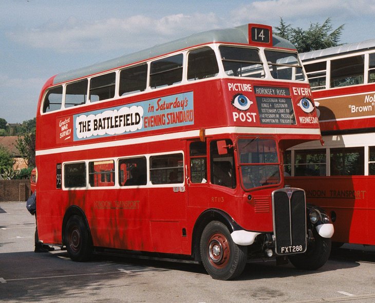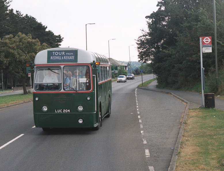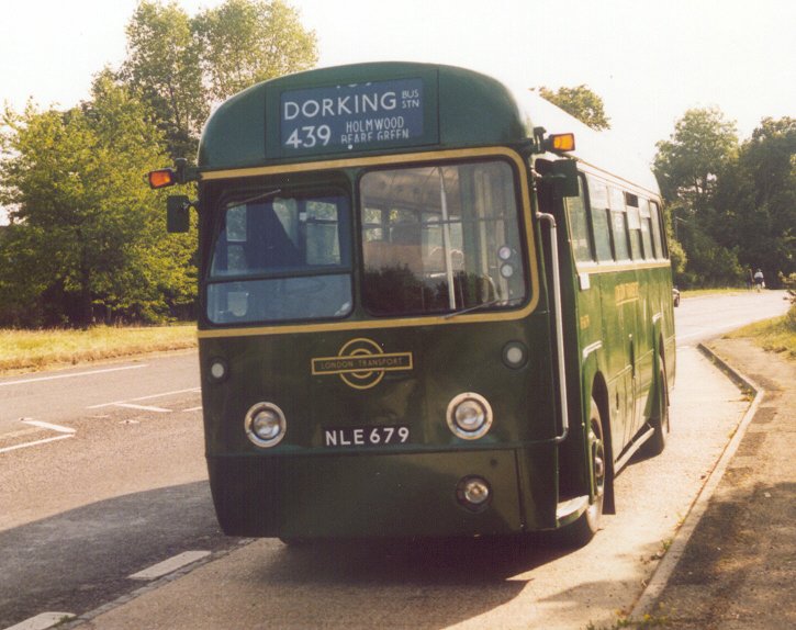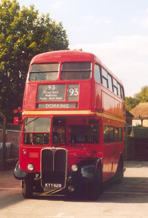 Dorking Running DaySunday 1st September 2002Prepared by Ian Smith, 30th September 2002Part 4: Epsom Recall (RT113, RF679).At Dorking I was in nice time to change onto RT113, about to set off on a return trip to Epsom. The war-time RT used to run on the 93 between Putney Bridge and Dorking on Sundays when new, and the crew had prepared commemorative certificates for distribution to passengers on the day. The bus loaded well, and I claimed a seat downstairs, near the platform.We headed north from Dorking, pursued by touring RF 4, which was heading for Denbies Vineyard. The RF spent most of the day on its designed tour duties, but did have some bus work in the form of the first and last clockwise trips round the 439 loop. RT113 rumbled up to Burford Bridge, and climbed over the flank of Box Hill to Mickleham, where we were held up by badly parked cars. Back on the main road we continued to Leatherhead, and headed north-east to Epsom. There we had a few minutes photography time, recollecting the old days of the 93 route at Epsom clock tower. While I was there my phone rang. Where was I? RF679 was going to head home as soon as possible, the unloader valve behaving well enough for travel but not for service. I promised to get back to Dorking as quickly as possible. That was on RT113 of course. The crew had already decided to give the horrors of Mickleham a miss, so it was a speedy (but enjoyable) return trip to Dorking.