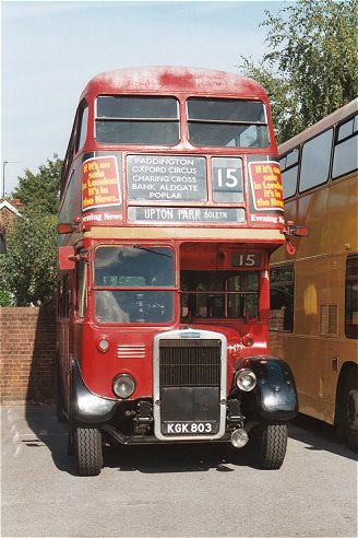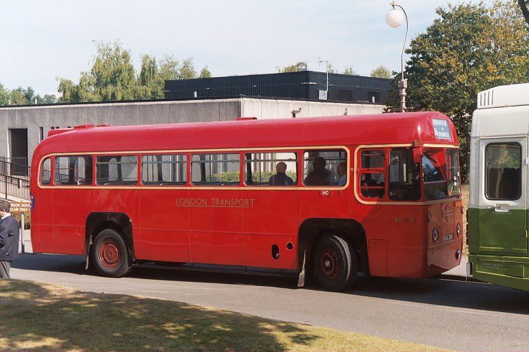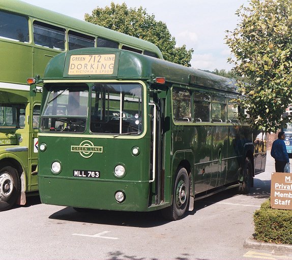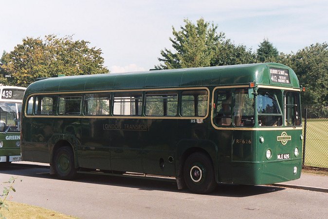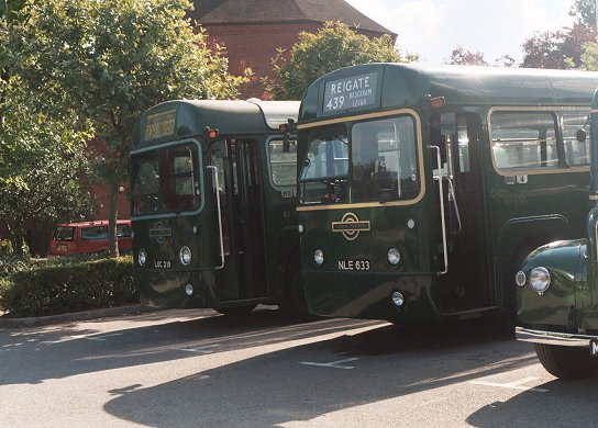 AEC Reliance RP21 was pulling away for the 1055 trip round the 439. I walked on to the other bus-park, looking for Peter Aves, the day's organiser. I found instead more buses: Colin Curtis's RF19 was visiting, and standing next to RF633. That was set up ready for the 1140 trip to Reigate on the spur-route 439 that leaves the circular route beyond Brockham for a foray through Leigh.