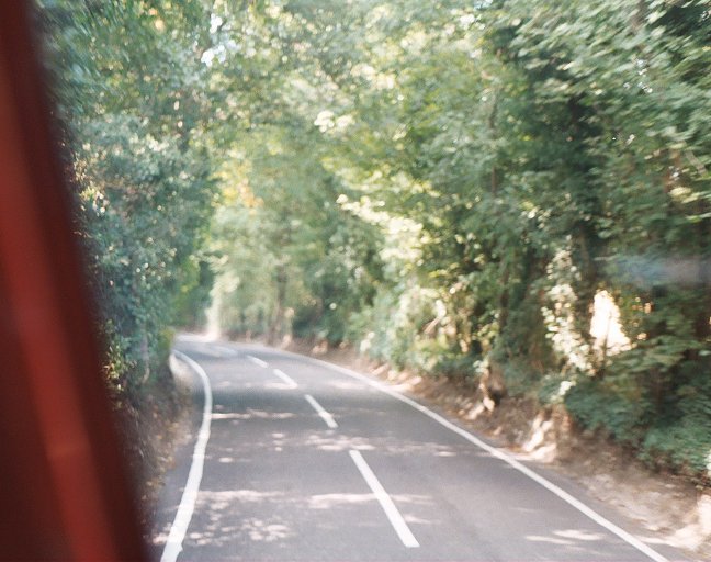 The two little buses pulled away, and began a slow climb out of Leatherhead, following the B2033 and forking right up the long run of speed bumps and other motor-bike deterents to reach the by-pass at the roundabout. We crossed over, and continued up the B2033 - a decent minor road - up through a dry valley to cross the ridge of Mickleham Downs. We wound round the bends on the south side of Headley, and turned right over Headley Heath to Pebblecombe. A sharp right there took us onto the Box Hill road. The bus route does not go right along to the western extremity, but goes as far as Greenacres, on the western edge of the village.