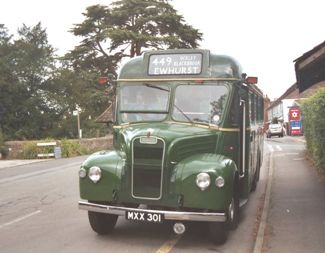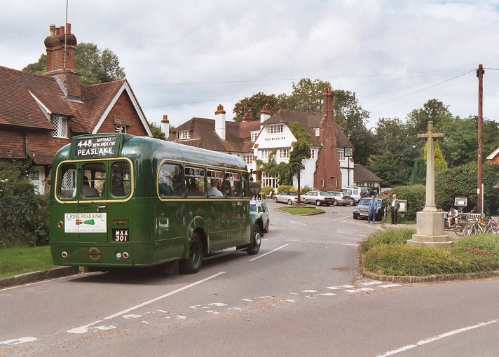 After the throng had been gathered aboard again we continued. No longer can the bus turn right at Capel for Ockley. Instead we had to continue ahead to the large roundabout, and head back north on the A24 to find the narrow left turn. We passed under the 13ft 3in railway bridge at Ockley Station (no RTs on this section of the 449!). We went on, past Ockley Court to meet the A29 at the north end of Ockley Village. A few yards south we turned hard right onto the B2126 to Forest Green, missing out most of Ockley village. We twisted along the green tunnel of the minor road, and just missed Forest Green too, crossing its northern extremity onto the B2127 to Ewhurst.