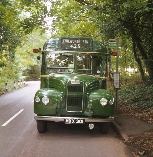We crossed the Tilling Bourne on the 7.5ton limitted bridge, and turned left along the A25 to Shere, where we were supposed to meet a 425 to Guildford. John drove past Shere on the main road, then turned back through the quaint village, with its plethora of old buildings. No sign of the RF.