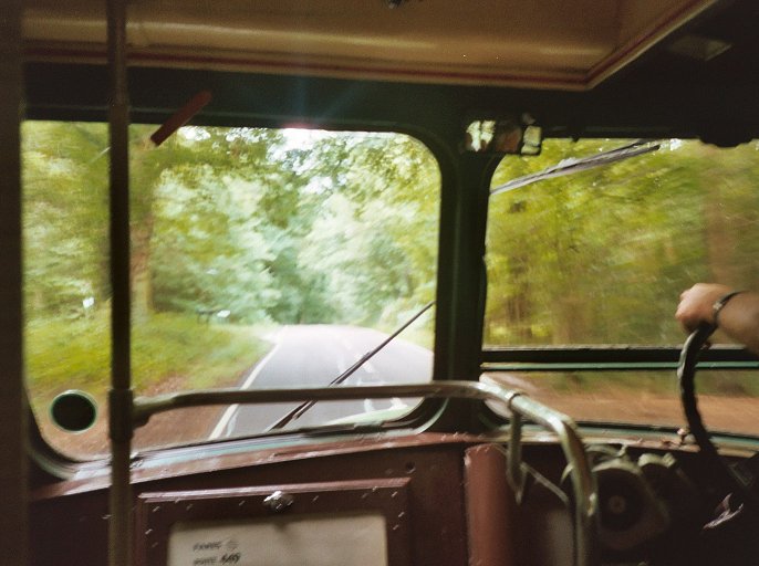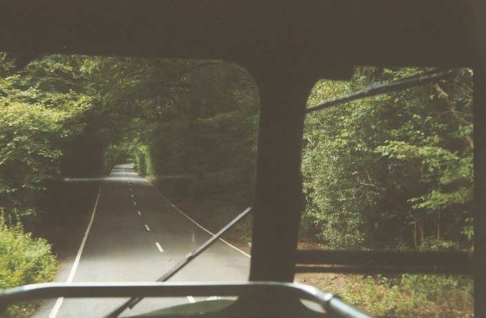 John drove GS1 out to the stop. I was quite surprised that we absorbed the queue. We set off to the roundabout, turned right and climbed up the long green cutting over Chart Downs. At the end of the wooded summit cutting John pulled left off the main road onto the back road to Blackbrook, and on through the woods of Holmwood Common to Four Wents Pond.