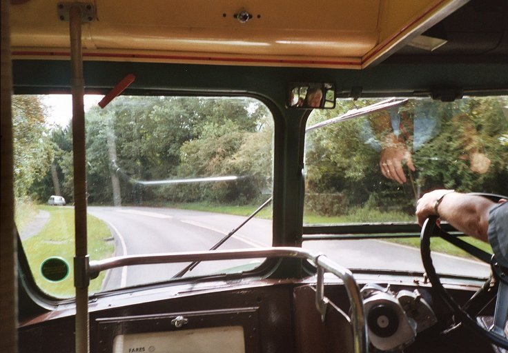John pulled up on the green common just beyond the junction, for another photo-stop. Many of the passengers alighted to get the "middle of nowhere" picture. Some discovered the evil slit-ditch hidden in the long grass on each side of the road!