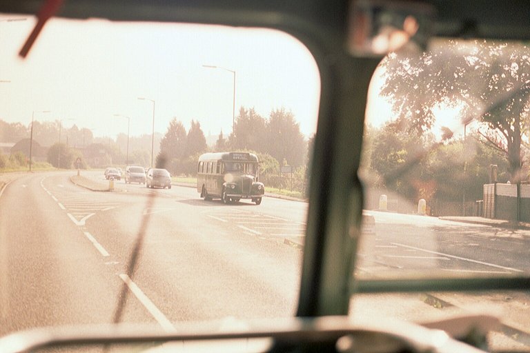 GS60, booked away at the same time as us, pulled away to the stand to load for a 433 journey to Ranmore, and we soon followed. We loaded up at the dolly-stop, and explained to our passengers what we intended to do. There was no chorus of dissent, so we set off eastwards. We soon met GS15 hot-footing westwards towards Dorking along the A25.