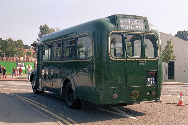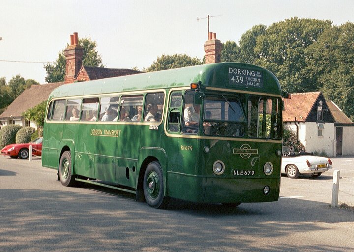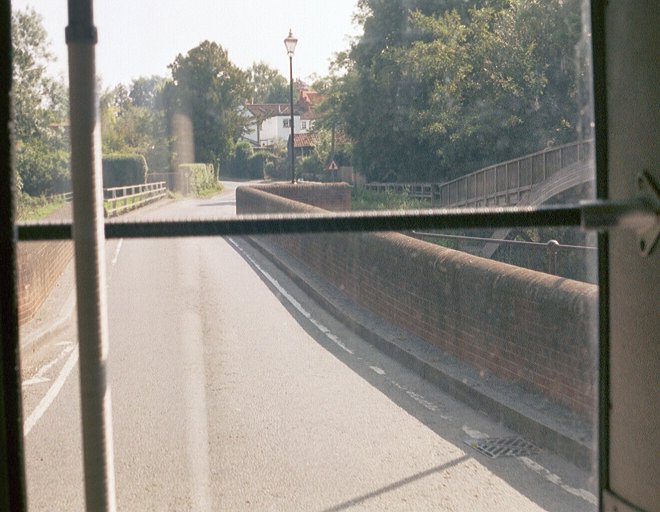 While they were busy I told Colin and Steve what I was intended to do, and walked down to the footbridge over the River Mole, beside the soldly-built brick road-bridge. After a few minutes RF679 came down from the green and carefully eased across the narrow bridge. I rejoined the bus at the north end of the bridge.