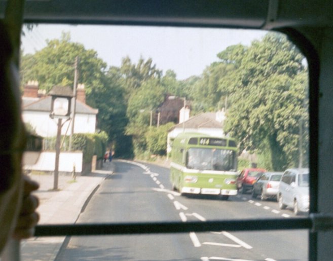 We headed on south, up the long straight past Strood Green, then into the windy woody lanes through Parkgate. We paused at the Surrey Oaks to pick up some passengers, then wound our way on to Newdigate. There I failed to spot the right turn in time, and we had to reverse a few metres to take the road to Beare Green. We joined the A24 near the Duke's Head by the compulsory left turn and round the roundabout manoevre, then headed north, soon pulling off the dual carriageway to visit South Holmwood.