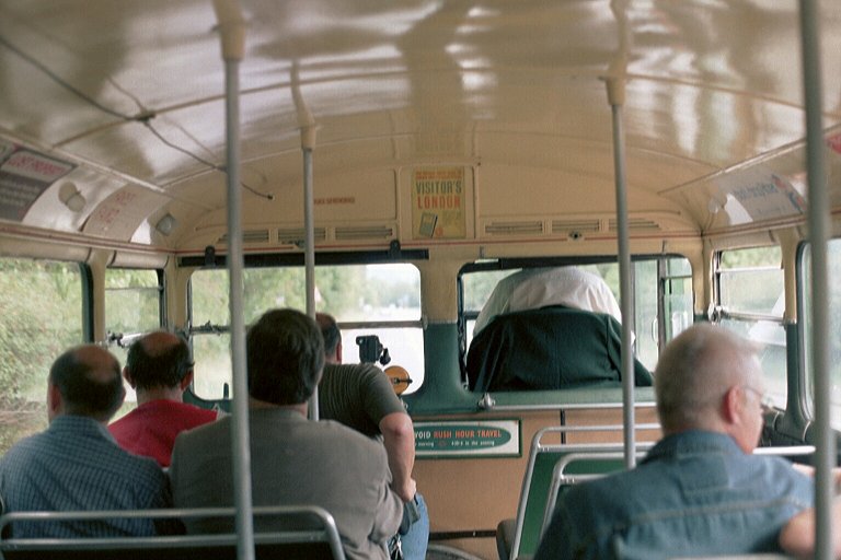 This was somewhere else that double-deckers had not been for many years, although I gather that our driver, Peter Aves, had been out with his measuring pole. Beyond the village our progress slowed to walking pace, when we met the trees. Peter Larkham - our conductor - and myself got off and walked ahead to spot for the driver, to make sure that nothing solid clonked the top of the bus. Then the trees eased and we reboarded for the drive along to Newdigate.