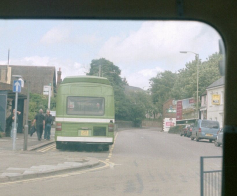 We scrambled back aboard the bus, and headed for Dorking. We stopped at the dolly-stop at Dorking Halls just as RF600 was loading on the other side of the road on the reverse trip, having already come round the loop via Parkgate and Newdigate. This made us ten minutes late. Some of our passengers alighted, and a few joined.