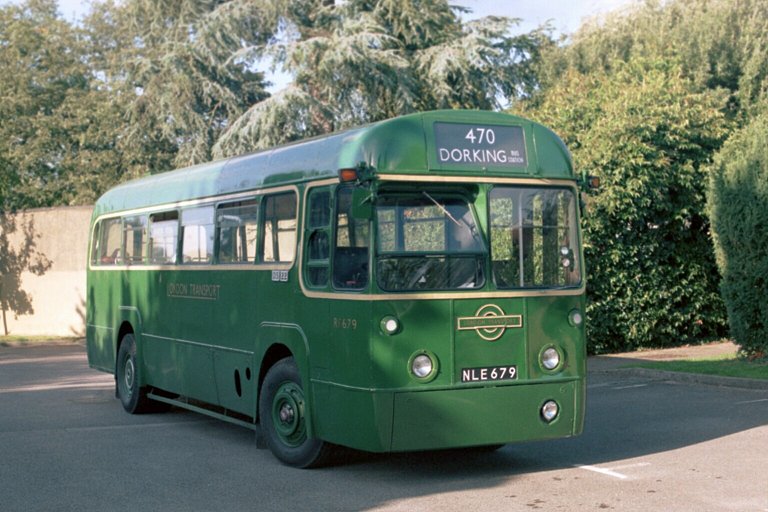 SNB449 was parking after a foray on the 414, prior to departiing on the return 462 to Staines. RTW75 was enjoying a ray of sunshine. (Is this bus a sun-magnet? Everytime I saw it today it was in sunshine, while mostly everything else was in shadow.) RF366 was taking a break before its departure for Guildford on the 425. RF679 came in from its trip up Box Hill.