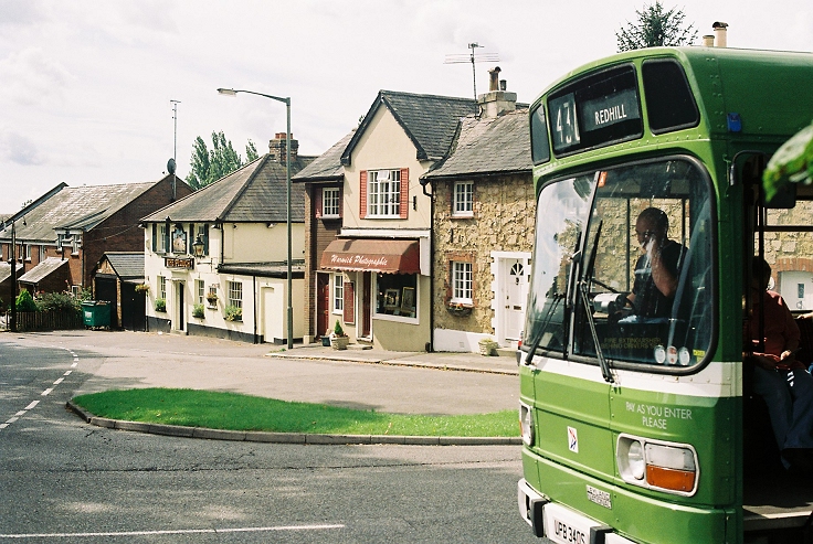 We squeezed past the parked cars round the narrow curved lane out of Leigh, and turned right towards Flanchford. The National is rather wider and longer than an RF, so takes an even defter hand to keep it between the bridge parapets. We watched the bus squeeze across, then reboarded.