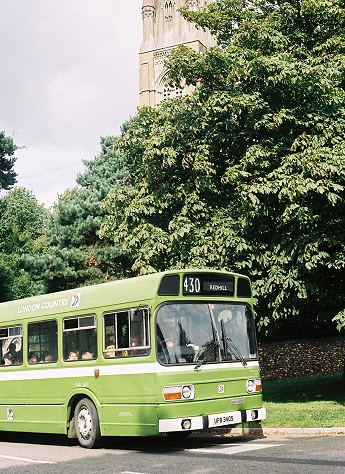 With the blinds reset for the 430 we set off round the Reigate one-way system, on a route our driver could remember taking this SNB along in service. After a loop round the town centre we escaped to the south, soon turning up right into the South Park Estate. We wriggled our way through in a rough anticlockwise semi-circle, crossing the main road again at The Angel, Woodhatch. We continued east along the edge of Earlswood Common to reach St,John's Church, where we paused for photos.