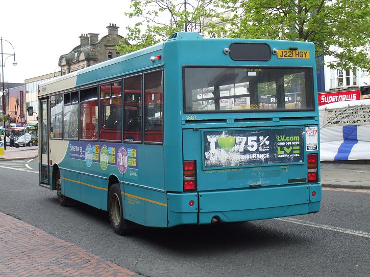 5/93 in service on D8 to Isle of Gogs Asda: yellow/maroon/badger $