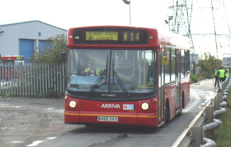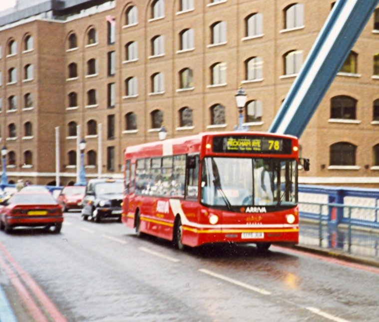 But in March 2002 the 167 was lost to Docklands Buses, and very promptly 952 to 958 were transferred to other parts of the Arriva empire. Route 20 was double-decked (with VLWs) in March 2003, which resulted in 959 to 968 departing to Arriva North-West or Arriva Scotland. But the remainder hung on at Barking, doing their intended job on the 78. They were refurbished and repainted in the plainer livery with white roof during 2008. A move to Ash Grove came in October 2010, still with the 78. A further move took some to Edmonton in January 2011. Still new, 975 crosses Tower Bridge with a southbound 78 in December 1998.ADL 1 (ADL701)ADL1 arrived at Arriva London North in September 1999. It came from Arriva's stock, and was a 10.2m dual-doorway bus with Alexander ALX200 bodywork. It was painted in standard Arriva red livery with cream cow-horns. I presume it was used for trials and evaluation, as more were ordered, in two lengths. It finally went into service in January at Edmonton, on route 444 (Turnpike Lane Stn - Edmonton - Chingford Mount - Chingford Stn).It stayed at Edmonton alongside ADL2-8 until April 2001, when it was transferred to Arriva London North-East at Barking (DX). They renumbered it ADL701, perhaps to be closer in number sequence to their own ADLs, or because Barking crews were used to identifying vehicles by their registration plates. Later it moved back to Edmonton, and indeed yo-yoed between Edmonton and Barking before settling again at the former, with its ADL1 number. It went to Arriva Scotland West in September 2009. ADL 9-23