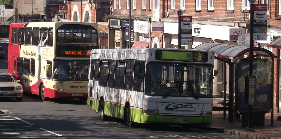 More ex-Metrobus LDPs: DP45, 46Two more of the ex-London General LDPs (26, 27) that had latterly been with Metrobus, arrived in August 2009, and after repaint were set to work in Sussex.Ex-Arriva DSLs: DP47-50Four of the Arriva Guildford & West Surrey Dart SLFs that had been taken over by Metrobus with the Horsham operation in October 2009, which Metrobus considered surplus to their requirements, were passed on to Countryliner in November 2009. These too were elderly 10.6m single-doorway "shoebox" SLFs, and Countryliner seemed in no hurry to repaint them into house colours. They were used on Sussex operations in turquoise and champagne, with Arriva fleetnames removed but still discernible, for over a year.Ex-London United: DP4,5In May 2010 two MAN/MCV buses that had been in Sussex went north, presumably back to their lessors, and Countryliner replaced them with a pair of twelve-year old Pointer 2s from London United, where they had been DP2 and DP3 ("Donner" und "Blitzen" on the 2007 K50 Park & Ride service). Again they were pressed into service in London United red and grey livery, on the Sussex routes.Countryliner has problemsIn March 2011 the Countryliner Group was called before a public enquiry because of various irregularities in some of the companies. The Group had several companies, and one at Guildford had its local bus licence revoked after tax and vehicle maintenance issues. One company at Heathfield also had its licence revoked from July, after numerous tachograph infringements, chopping off its local bus work. The other Guildford company, having had a high rate of MOT failures, received a warning. Countryliner Sussex had no action taken against it, and increased its licence to enable it to continue some of the bus work surrendered by other parts of the group. Several routes were abandoned, and contracts not renewed after completion, and the whole group was put on notice that its financial standing would need to be affirmed every six months. (The Petersfield operation in Hampshire was unaffected.)Running a fleet of old buses is not always the answer. It MAY be cheaper than leasing new buses, but only if the company can stay on top of the maintenance. One waits to see (Nov 2011) which buses have had to be disposed of to fit within the new licence arrangements. Countryliner closed down its Guildford & Uckfield operations on Monday 8th October 2012, leaving a considerable gap in services that other operators endeavoured to occupy without suffering the same fate.