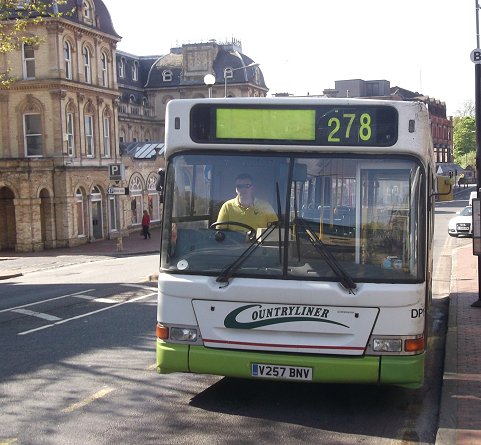 DP14-17: 10.0m secondhand SLFsThree 10.0m Pointers that had originated with Armchair and had recently been hired by T-GM were acquired in March 2003 to replace the three step-entrance Darts (which went to Guernsey, where their narrowness would be appreciated). For some reason they did not receive their fleetnumbers until October. Perhaps they were repainted at that stage, having started work in Armchair orange/white.DP17 at Tunbridge Wells Station on Sunday 13th May 2012, on the 278.DP18-21: More secondhand MPDsEarly 2004 saw another four MPDs acquired. Two came from Courtney Coaches in Bracknell. One of these, DP20, was repainted in an overall yellow livery for a contract with the National Trust to run the NT1 service to NT properties in the Dorking area, such as Polesden Lacey.DP20 passes Dorking Halls on the NT1 to Polesden Lacey, Sunday 1st September 2004. Later in the day I met it coming way back down from Ranmore Common in pouring rain.DP21 was an ex-airport parking bus from Birmingham. The owners wanted to keep the registration, so it was duly reregistered on transfer.Countryliner expands into Sussex