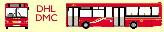 Uxbridge Station, April 2004: DHL530, 531.In ServiceFirst began its National renumbering scheme during 2004, and these buses, like the other London Dart SLFs, had 41000 added to their fleetnumbers. Except that someone messed up. A new batch of Darts somewhere else were given numbers 41515 to 41519. When the error was noticed, rather than renumber those new Darts into the correct numbers for their local scheme, the London Darts were renumbered 42515 to 42519. For some reason the fleet type (unique to London), was altered from DHL to DMC. The new numbers began to appear gradually, quicker at Rainham than at Uxbridge.The Rainham and Uxbridge contingents stayed put (with the exceptions that 522 and 527 swapped locations in July 2004 for some unknown reason). But in December 2005 Rainham was closed, and its stock and routes, including all the Rainham DMCs, were transferred to the new Dagenham depot. Uxbridge Station, October 2008: DMC41529 on U2, DMC41532 on U5.But from 2008 the Dagenham buses started to move westwards to Uxbridge, displaced by new EnviroDarts. Some went to Greenford in March 2009 when the 195 was suddenly dumped in First's lap, but their sojourn there was brief. They began to go into store at Hayes, being reinstated as required while new buses were being acquired for new route contracts. The Uxbridge batch continued doing their original roles, until the influx of newer buses started to put these too into store. The depot at Lea Interchange acquired a significant number of them in 2009/2010, to replace older Marshall Darts on the Stratford area routes. Moving onIn the summer of 2012 the DMCs that had remained in east London were mostrly dispatched to the First disposal pool. The Olympic Games brought a brief change of scene for four of the class, three of them reinstated from store: they were used with conductors for a supplementary free service on the 108 (Lewisham - Stratford) to assist Go-Ahead with enormous loads through the Blackwall tunnel to and from the Games.