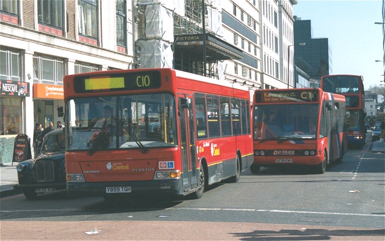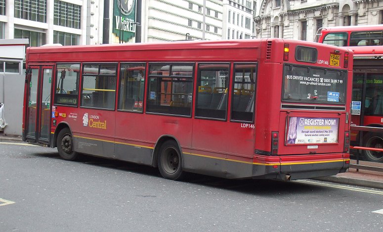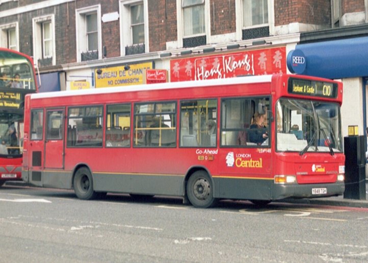 LDP159 on C10 at Victoria, April 2002. LDP183 pulls out of Lewisham Bus Station on the 484 to Camberwell, May 2005.