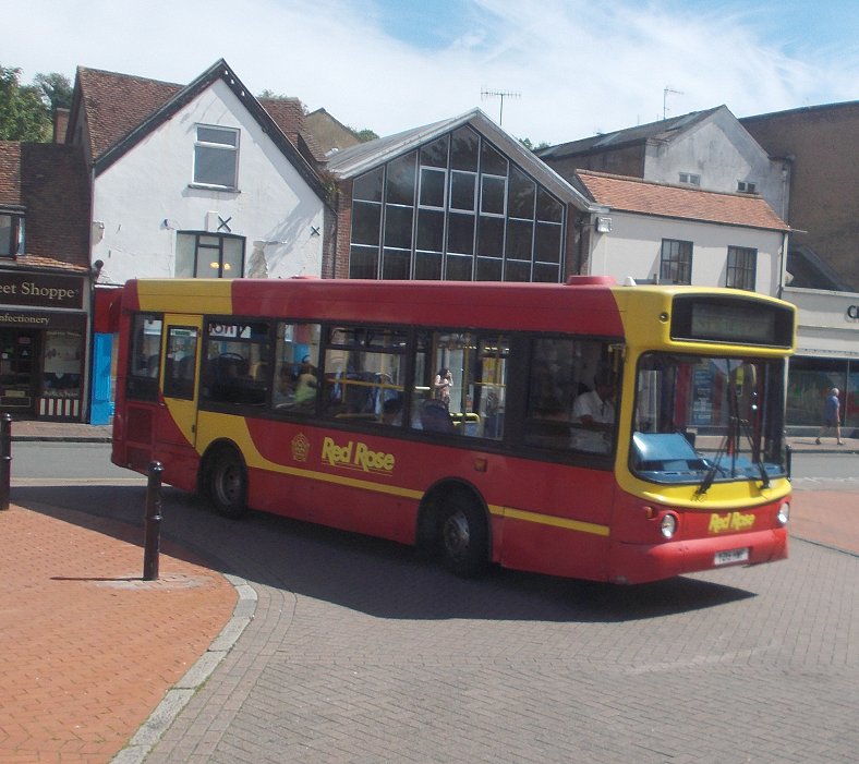Also in summer/autumn 2011 Red Rose bought four 8.8m SLFs from London Central, where they had been on the C10. The four LDPs helped replace the remaining midibuses (MetroRiders, Varios, etc), towards making the fleet uniformly SLF or EnviroDart. These four were also treated to the new red and yellow livery. Winter/spring 2012 saw the process continue, with an ex-London United 10.1m (DPS4), plus two MPDs from Abellio (8005/6).