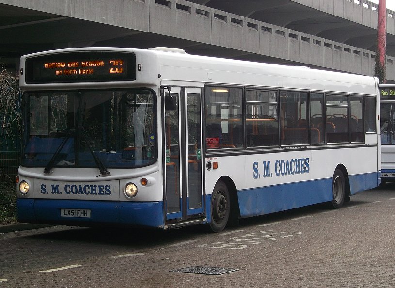 SMC Pointer In the spring of 2008 S.M.Travel underwent a reorganisation involving previous offshoot Olympus Bus & Coach and associated Roadrunner Coaches. These companies had a number of secondhand Dart SLFs, which presumably sparked a rationalisation, with the almost new (and therefore expensive) leased long Darts being returned off-lease. Several of the other companies' SLFs sported a new livery of white with blue skirts and SMC fleetnames.
