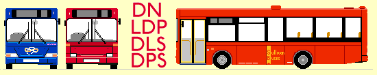 Sullivan Buses Dart SLFs: DN, LDP, DLS, DPSCaetanos: DN1-7Sullivan Buses of South Mimms established themselves as a supplier of Railway Replacement buses and contract work, using mainly ex-London Transport and London Buses vehicles, notably Titans, Metrobuses and some Darts of various sizes and body maufacturers.DN1 at the Cobham Bus Gathering, Brooklands, in April 2002, wearing blinds for Potters Bar route 398.In February 2001 Sullivan bought a new Dart SLF, an 11.0m Caetano Nimbus, and took on some rural (R3, R5 and R16) and Watford (Sunday W4) bus routes. DN 1 was given a vanity registration: X2 SUL, and overall red Sullivan Buses livery. Yellow doors and yellow on blue blinds added an attractive note.