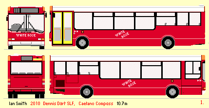 White Rose expanded its local bus operations in 2001, acquiring three secondhand long Dart Marshalls from Red Arrow in Birmingham