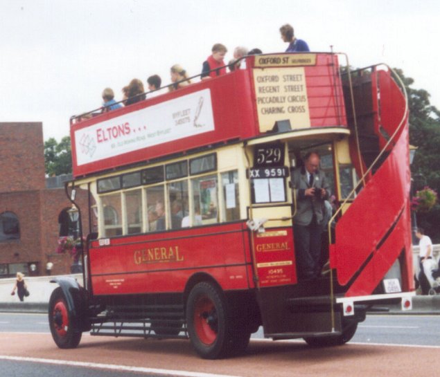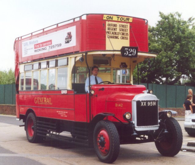 By 1928 the surviving Dennis 4-tonners were almost all on pneumatic tyres. This allowed the maximum allowable speed to go up from 12 to 20mph. Useful when competing with the General's K-types and S-types! But the Titans of other Independents were serious opposition, and the General was soon to re-equip with seriously more modern ST types. London TransportLGOC, although having taken over many Dennises, had disposed of all of them before the London Passenger Transport Board took over in 1933. Now London Transport mopped up the small operators within its patch, numbering their acquired Dennises into a D-series, which initially included all kinds of buses, both single deck and double-deck, enormous and tiny. The 4-tonners were renumbered, or numbered on acquisition, into a series between D175 and D201, filling in the gaps left when other types were renumbered into different series: DS, DE, DH, DM... They were all slated for early disposal, and went during 1934 and 1935.PreservationD142 was a Dodson-bodied 4-tonner built in April 1925 for the Dominion Bus Company. It had been taken over by the LGOC in March 1926, and given number D22. After overhaul and body swap it was allocated to Redburn's (a LGOC subsidiary). After another spell with LGOC it was allocated to Public, who numbered it D142 and used it from West Green garage on the 529 (Winchmore Hill - Pimlico). Public moved it to Enfield garage (also supplied by LGOC). It received other new bodies at overhauls in 1930 and 1931, and at some stage received pneumatic tyres. It was also used in its latter days from Hounslow and Hackney garages, before withdrawal from service in December 1931 and sale. Forty years later it was uncovered in Wickford, Essex, covered in corrugated iron sheeting which had largely protected it. A group led by Mr Prince Marshall restored it it to magnificent working condition. In 1972 it went on tour in Japan, for English Tourist Board, before touring the UK Back at headquarters in the old Nunhead garage it was prepared for use on the London Sightseeing Tour on route 100, to and from the London Transport Museum in Covent Garden. In 1984 it was acquired by the London Bus Preservation Trust at Cobham Bus Museum, from where it made forays to various rallies and road runs. I met it one day in June 2001, when it was guest of honour at the opening of a new Bus Lane across Kingston Bridge. I was fortunate enough to be invited for a ride as it headed back towards Cobham, and enjoyed the sunshine on top along to Hampton Court. The Cobham Museum moved to Brooklands in 2012, as the London Bus Museum, and D142 took up residence there.D142 was guest of honour when a new bus lane was opened on Kingston Bridge in June 2001![]() ![]() ![]() |